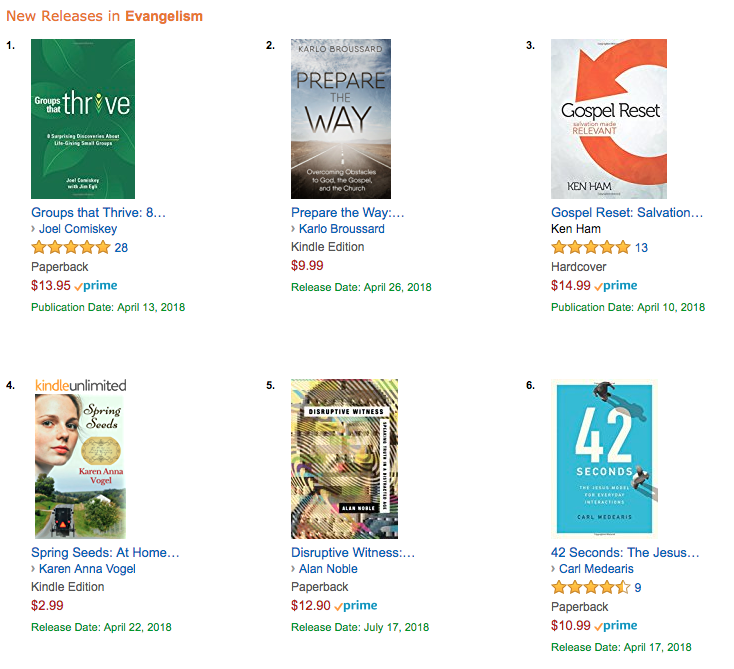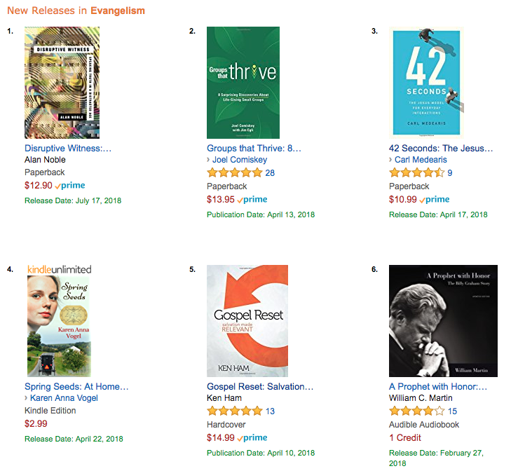 Disruptive Witness has (ever so briefly) topped both the list of New Releases on Amazon under Books > Religion & Spirituality > Religious Studies > Sociology and under Books > Christian Books & Bibles > Ministry & Evangelism > Evangelism.